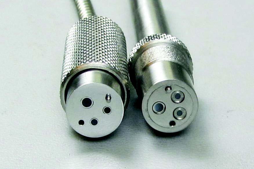 An der Schnittstelle des LWL Steckers werden Leckagen durch die Fasern wird mit Saphirfenstern über den Faserbündeln abgedichtet.